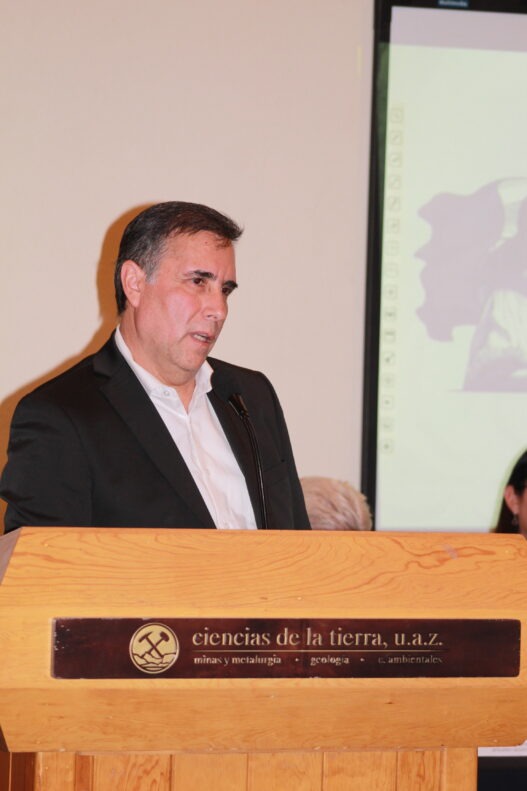 La charla fue moderada por el Ing. Raúl García Reimbert, presidente del Colegio de Ingenieros de Minas, Metalurgistas y Geólogos de México, quien abrió el diálogo con la interrogante: “¿Qué papel juega actualmente la minería en el desarrollo económico de Zacatecas?”.