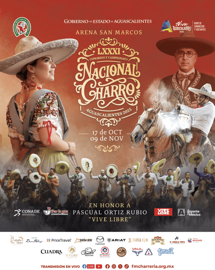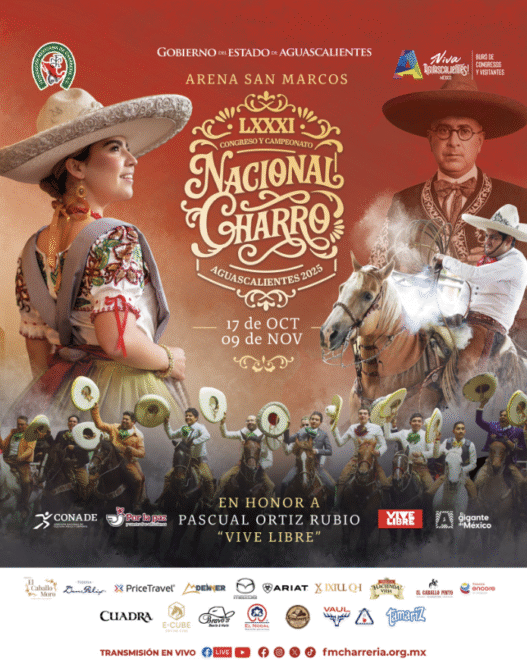 El espíritu de la charrería vuelve a Aguascalientes. Del 17 de octubre al 9 de noviembre, la Arena San Marcos será sede del LXXXI Congreso y Campeonato Nacional Charro 2025 “Pascual Ortiz Rubio • Vive Libre”. Un encuentro que une la pasión, la historia y la identidad de México en un solo escenario.