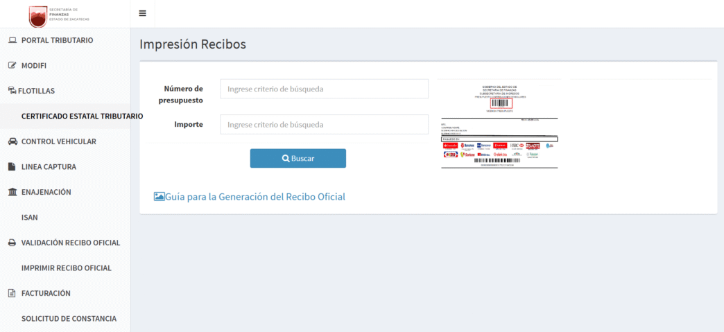 - Accede a la sección “Impresión de recibos oficiales”.
