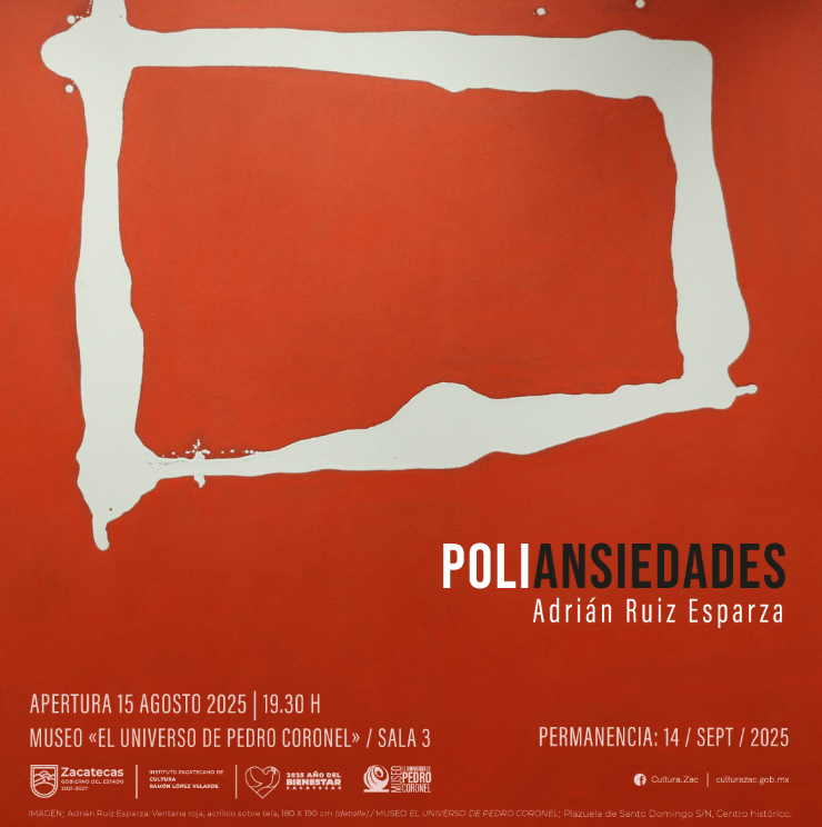 En paralelo, se inaugurará “Poliansiedades”, una propuesta de arte contemporáneo del zacatecano Adrián Ruíz Esparza, catedrático en temas de arte y cultura. La exposición estará disponible en la Sala III y permanecerá abierta hasta el 14 de septiembre de 2025.
